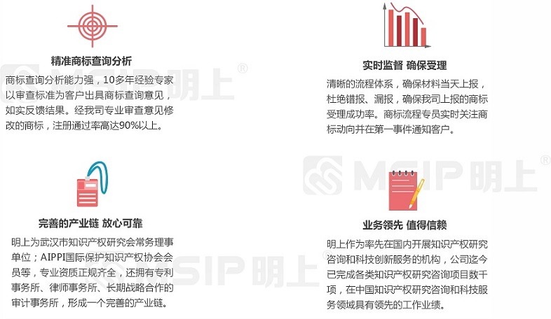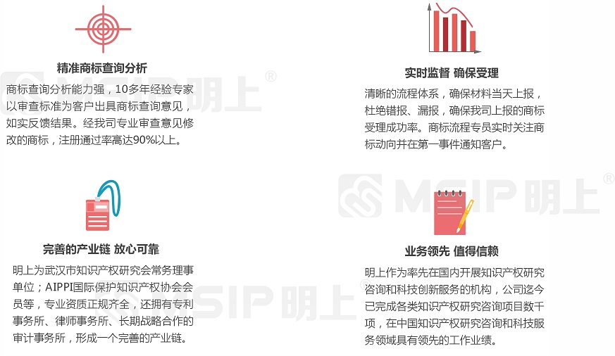 1、專業(yè)知識(shí)產(chǎn)權(quán)背景 明上利用自己專業(yè)化的知識(shí)產(chǎn)權(quán)背景,為企業(yè)知識(shí)產(chǎn)權(quán)領(lǐng)域業(yè)務(wù)提供專業(yè)解決、代理申報(bào)服務(wù)并完善申報(bào)工作中關(guān)于企業(yè)自主知識(shí)產(chǎn)權(quán)的專業(yè)問(wèn)題。